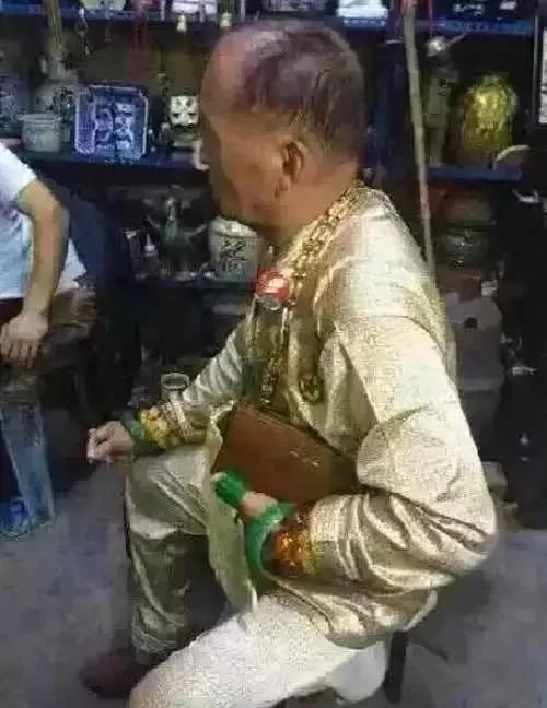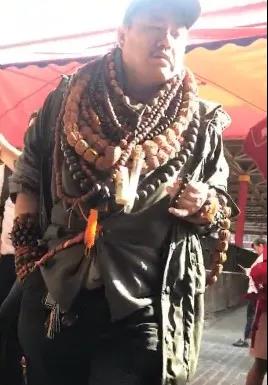 十位大仙中,唯一一位是翡翠饰品的,头挂砗磲手戴翡翠,刮个秃子倍有面子!一走一