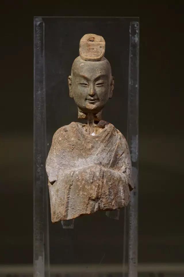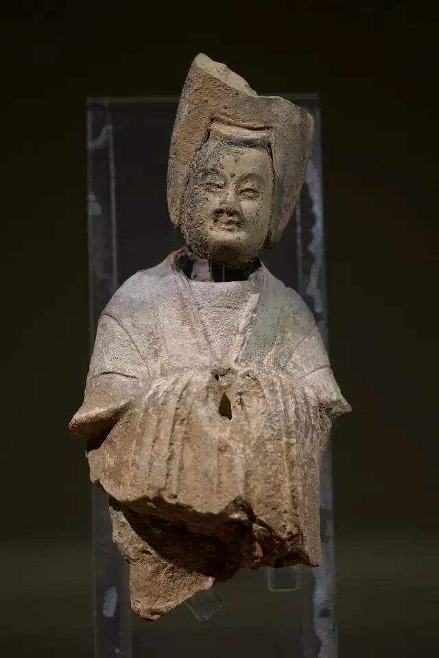 用以支撑。塑像背后被削平,可见当时是贴于墙面的,可能是帝后礼佛图中的一员。