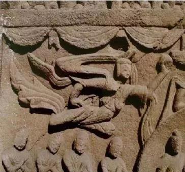 云冈第34窟西壁佛龛北侧上隅飞天,北魏