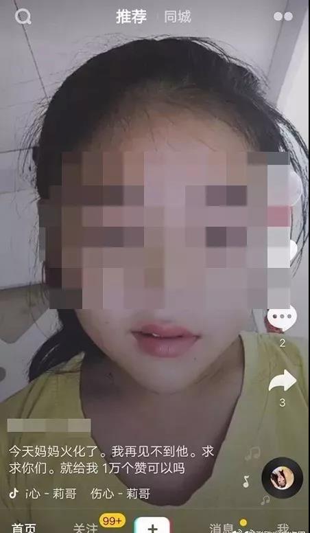 一位年轻女孩,拍了一段自拍,配文是:“今天妈妈火化了。我再见不到她。求求你