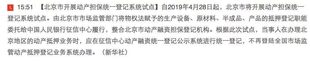 其实的资产,不到一周时间,北京市成为国内首家开展动产担保统一登记系统试点城市。接