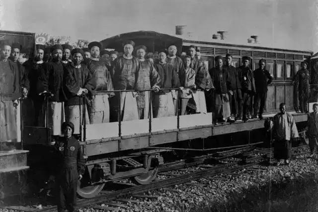 1881年,开平矿局修建的中国第一条准轨铁路——唐胥铁路通车后,清直隶总督李鸿章率幕僚乘车视察。