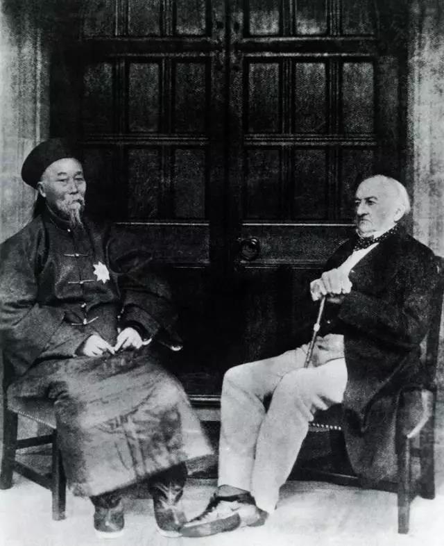 1896年,李鸿章与退休的英国首相威廉·格拉斯通并坐。