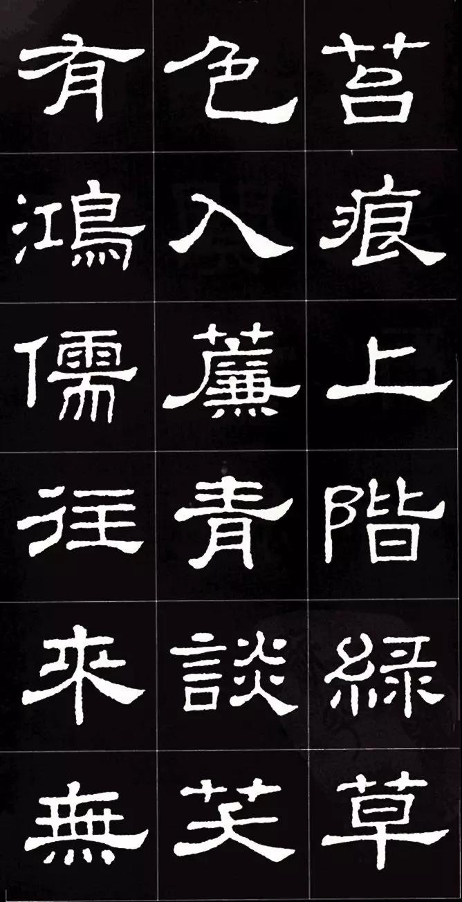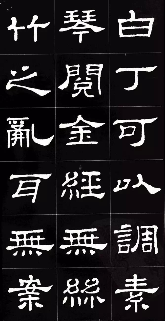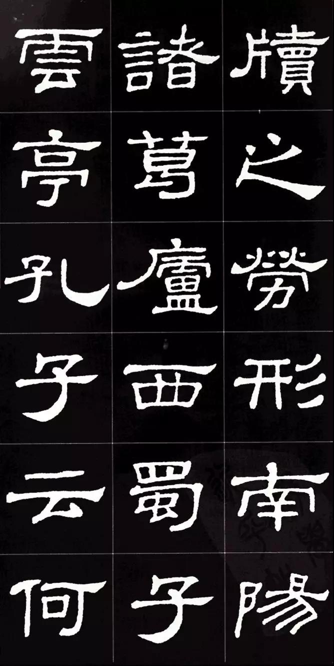 细,中敛而四面拓张,波挑分明,呈方棱形,笔致古朴,神韵超绝,为汉隶成熟期方整