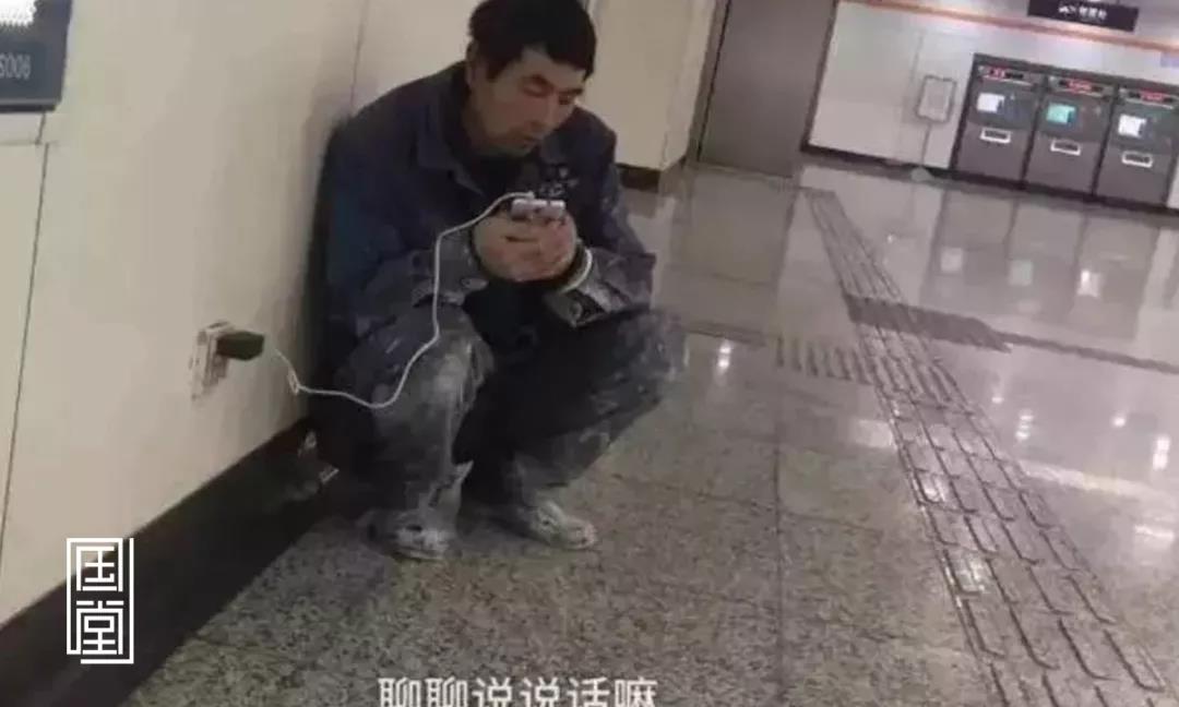 上海的冬天有点冷,他刚下班,衣服还没换,就赶忙到地铁站充电,靠墙蹲着跟女儿视频。