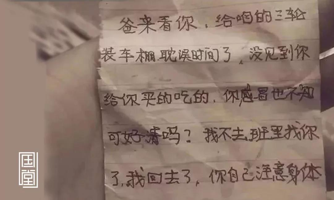 一位父亲去学校看望自己的儿子,带了一大包好吃的,还留下了一张纸条——