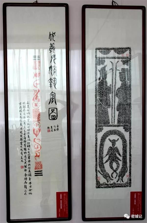 行展出,内容主要包括展示伏羲女娲形象的汉代画像石、画像砖拓片,女娲陵