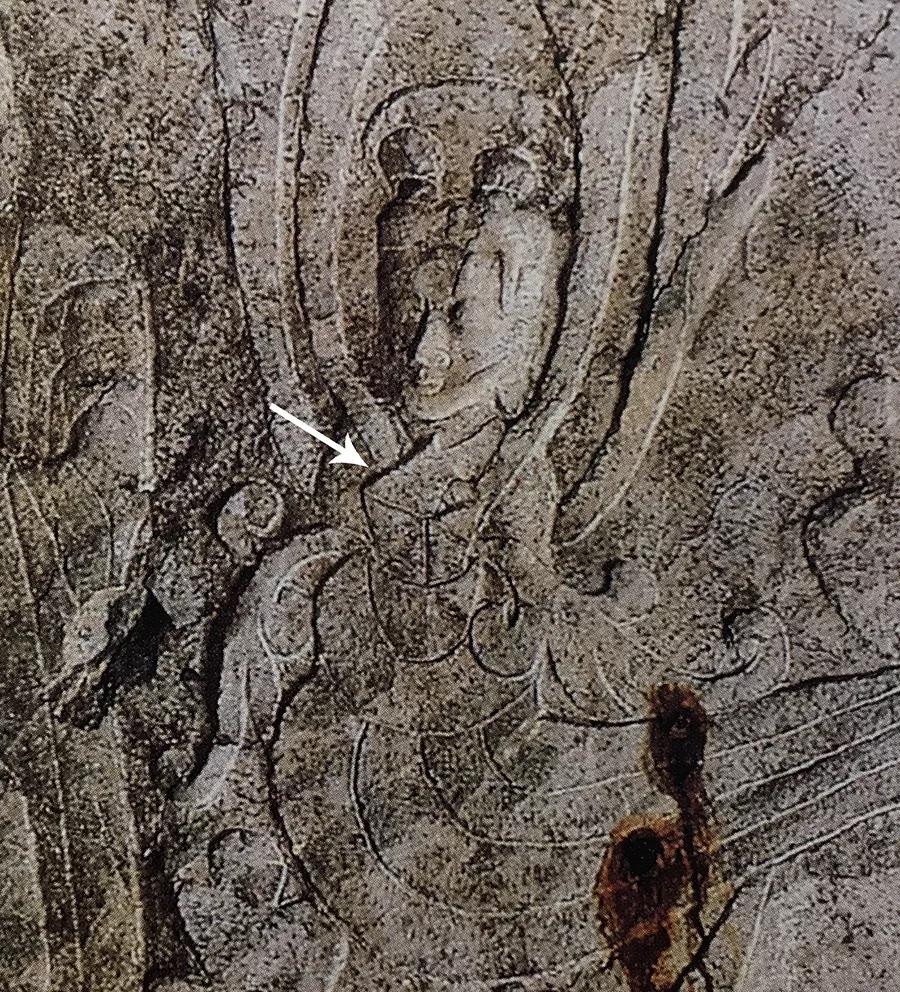 这尊像的特殊发式,目前仅发现一例,像一个记号一样,非常明显。很显然,这不是工匠的差池疏漏,