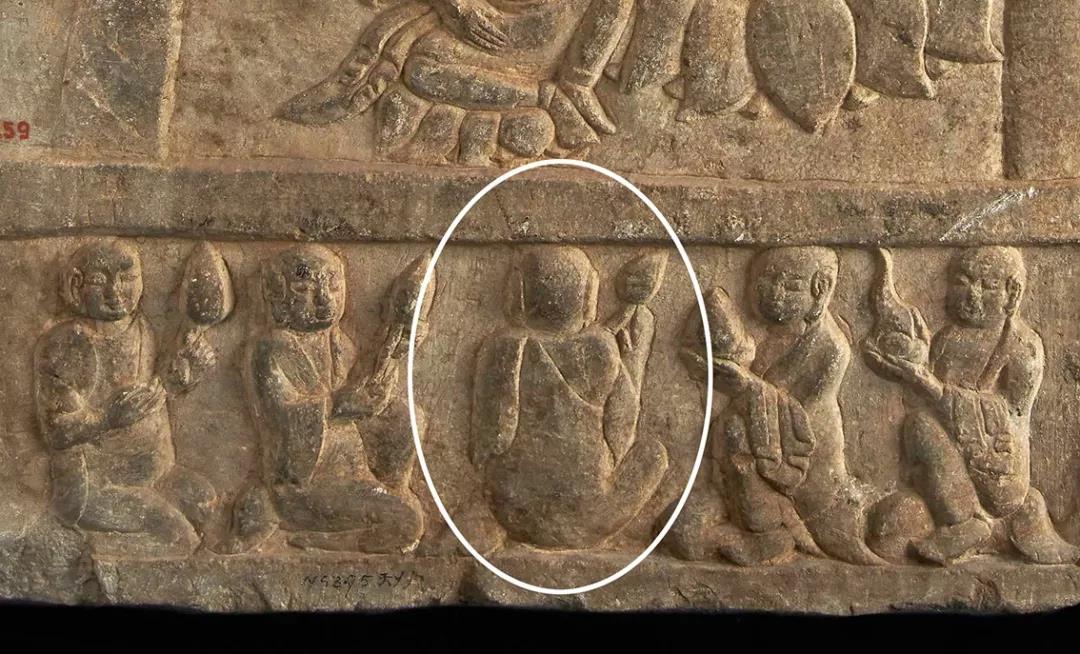 或有博山炉、莲花。这是普遍的规律,而正中间这位背面的弟子是否是为了替代博山炉而采用的