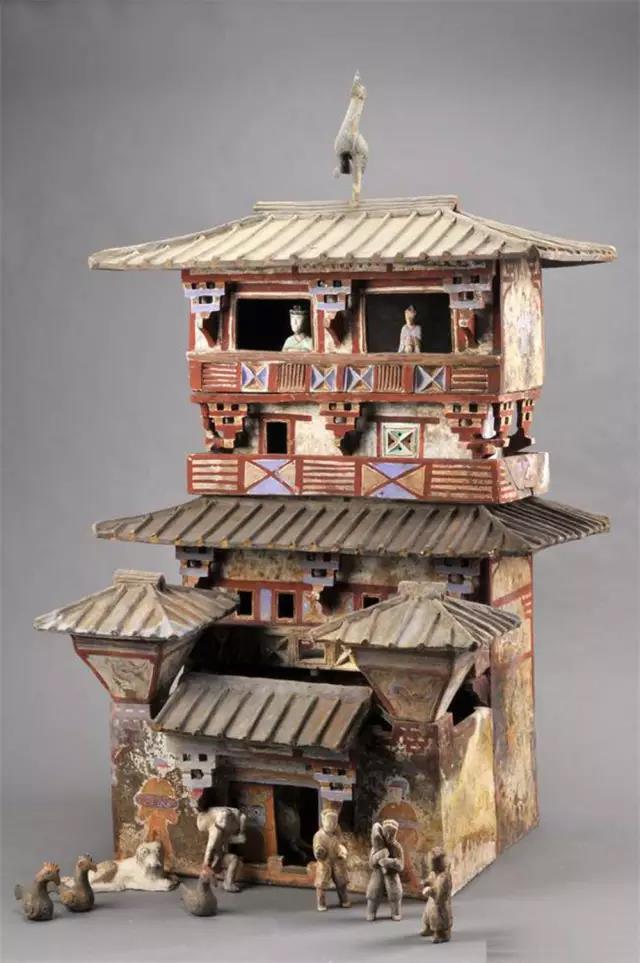 涂一层薄釉的。种类有简单的井亭、畜圈、碓磨、仓廪,复杂的住宅、塔楼,以至于坞