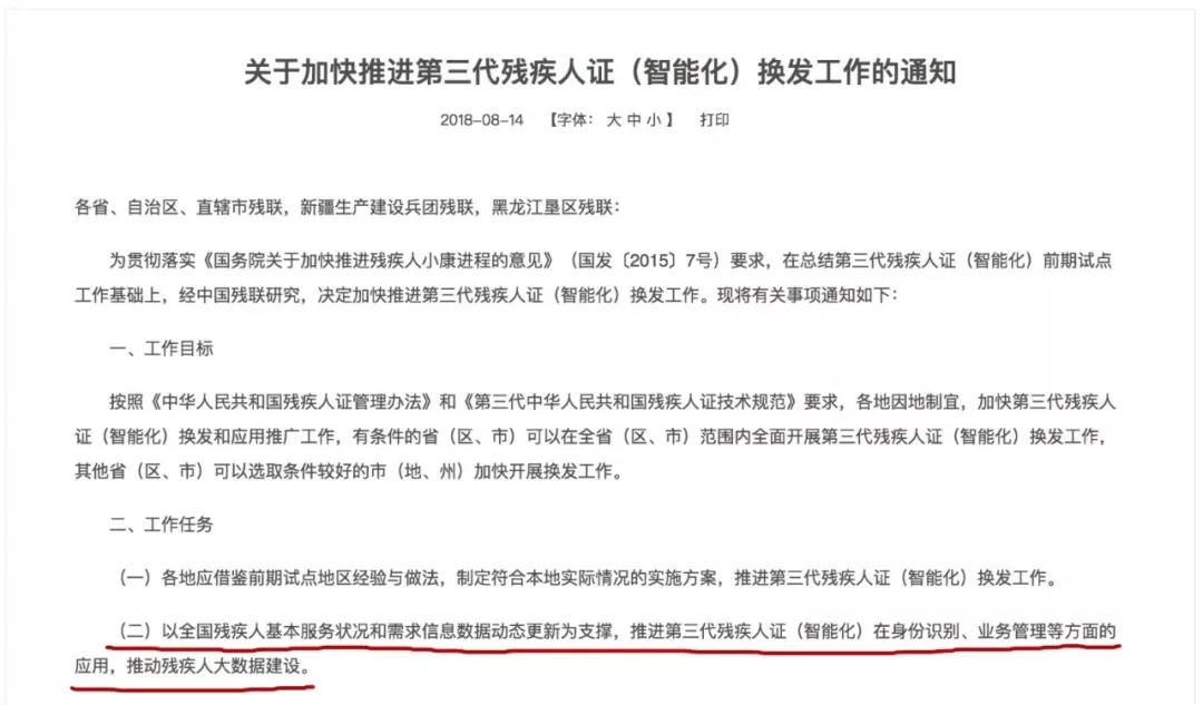 中国残联发布《关于加快推进第三代残疾人证(智能化)换发工作的通知》,决
