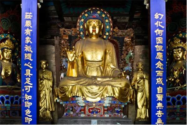 摩尼殿内中央是迦牟尼金身像