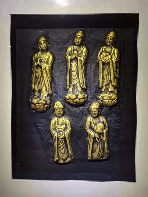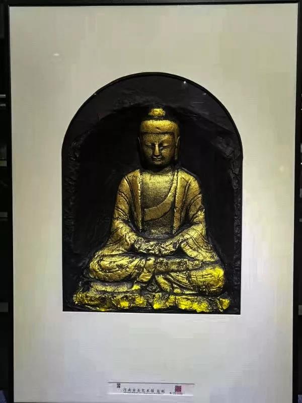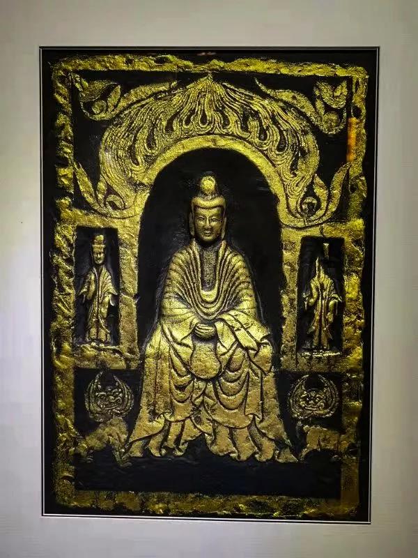 中心师生独创的立体金拓作品。这些作品采用特制的宣纸、墨汁、金液、定型剂等,通