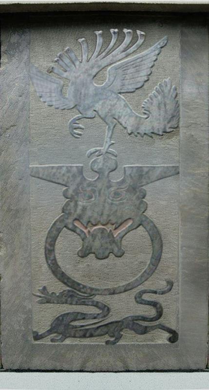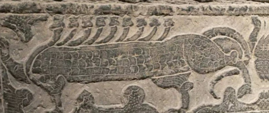 雕博物馆所藏的汉画像石墓门“九头凤”图片,对九头鸟在汉代的造型作一个很