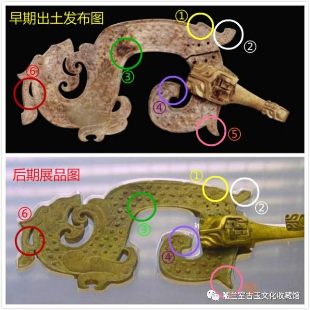 经过比对发现,后期展品与早期出土资料不一致,暂且找出几处差别,说明不一致的展