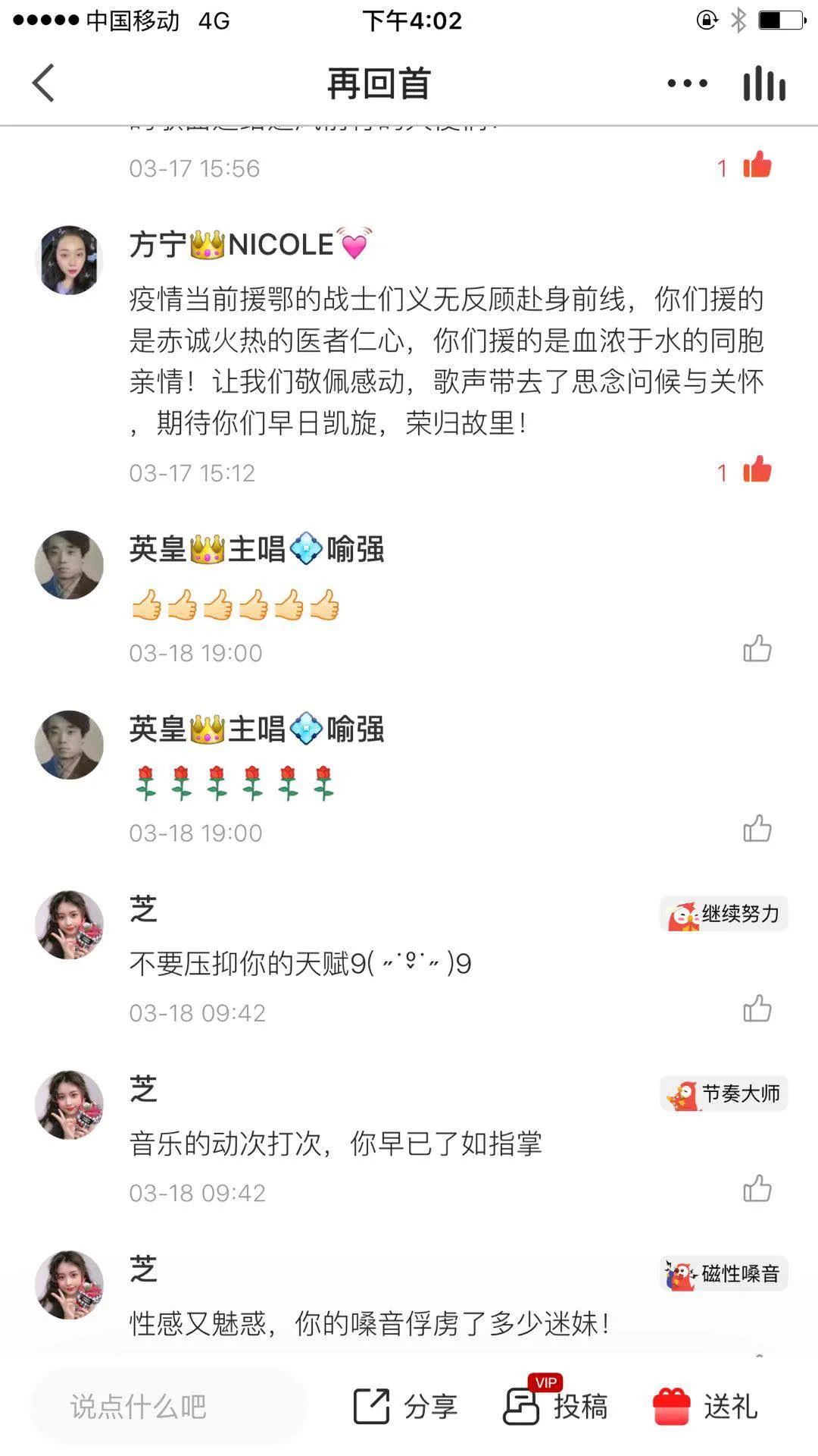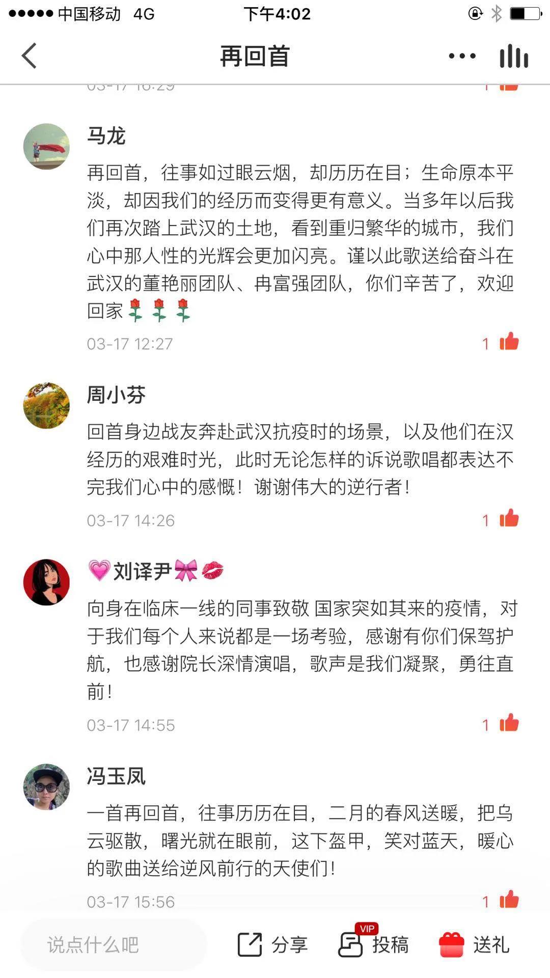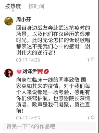 k歌团歌手和抗疫前线医护人员评论互动