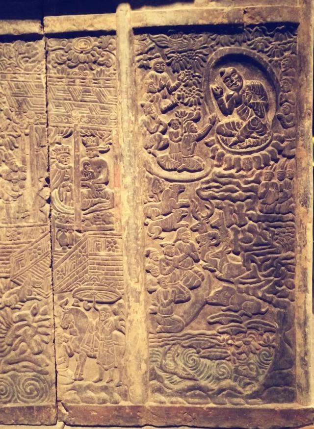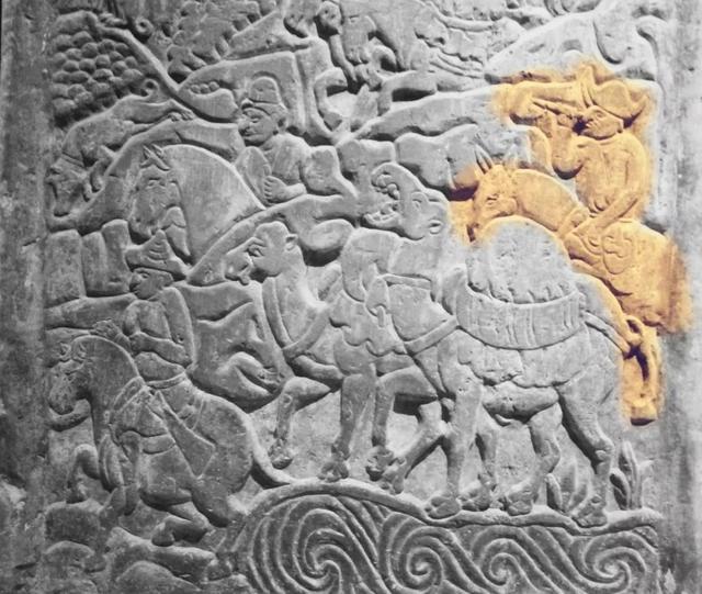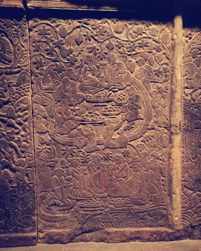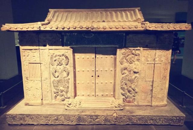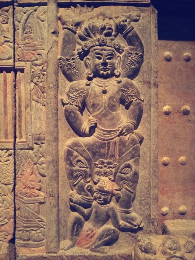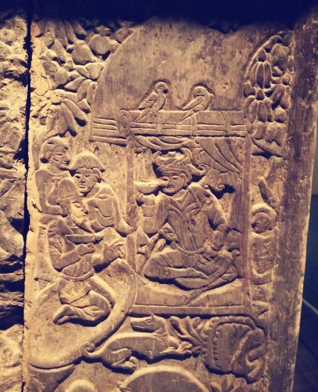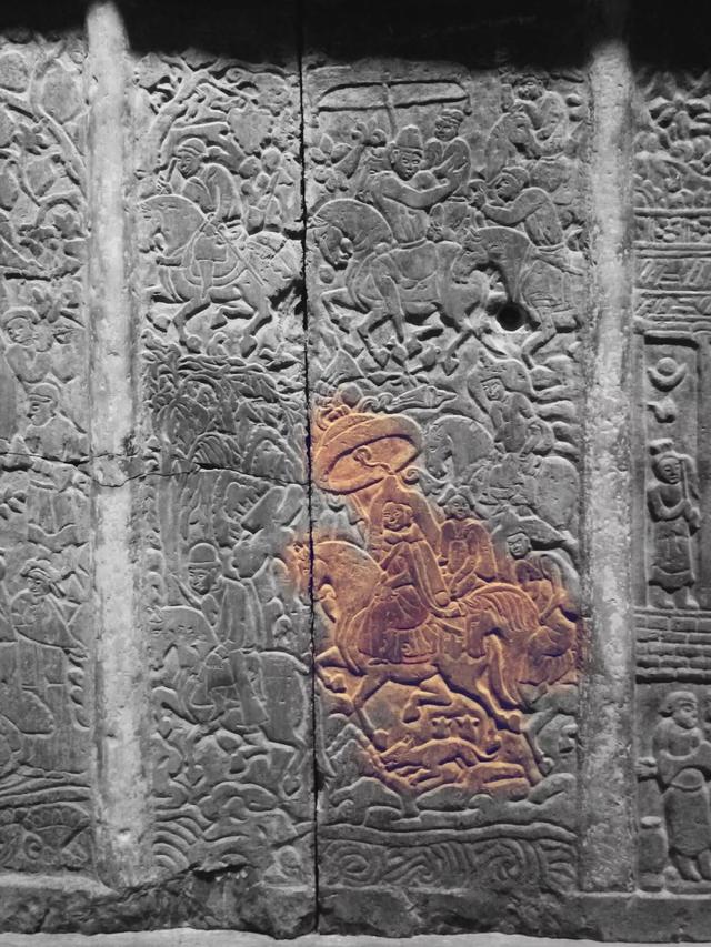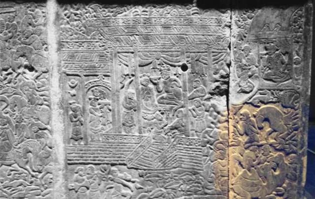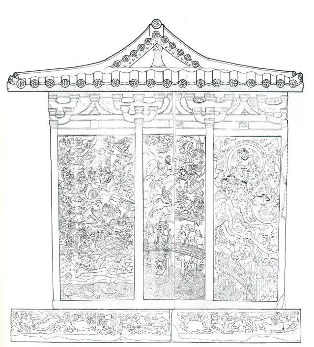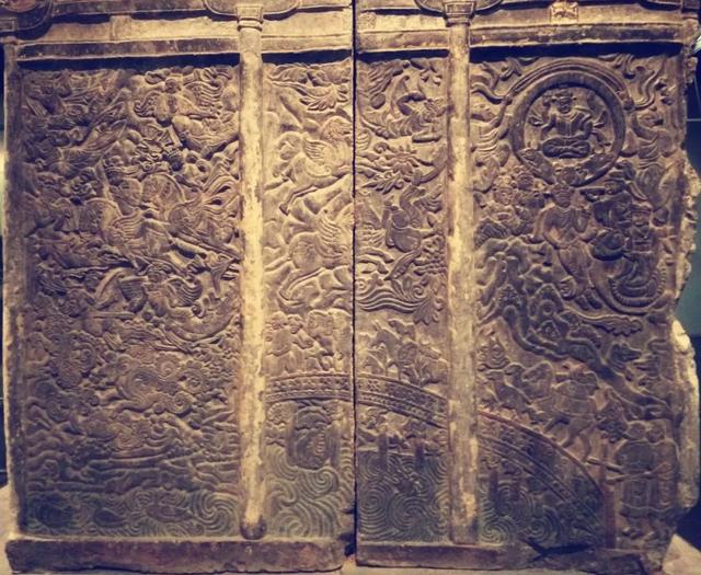 顶殿堂式建筑的石椁,也在石椁外侧让工匠用贴金彩绘浅浮雕的形式记录了我丰富而传奇的一