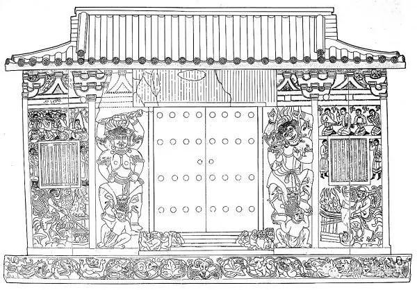我听说汉人墓葬中多用震墓兽,于是石椁正门两侧雕出两个脚踏小鬼的四臂守门神,为我的来