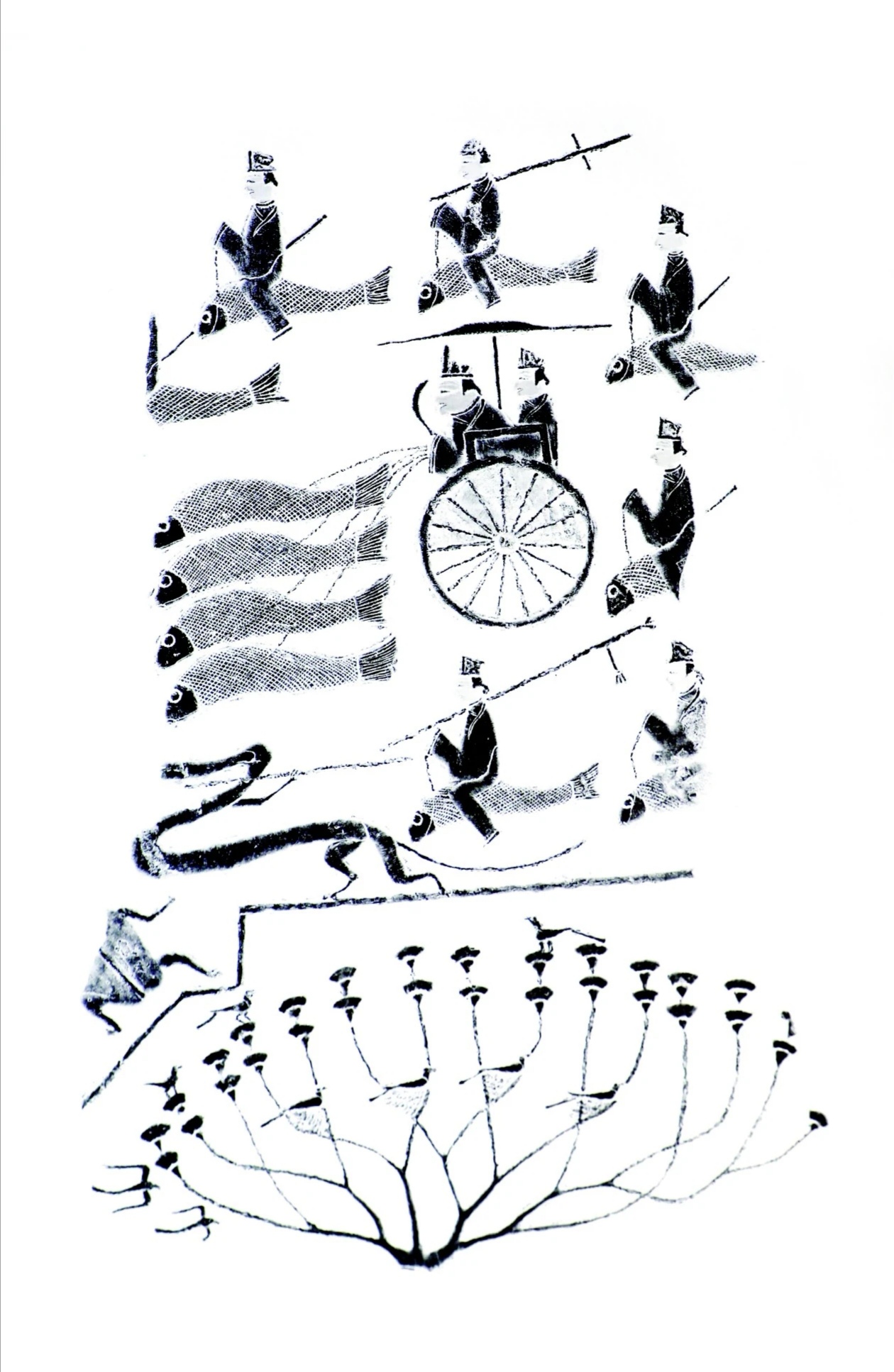 历史故事、天文地理画像石、碑刻拓本;黄河沿岸历代名人建筑、石窟寺庙等碑刻、造像、岩画拓本;记载历代开发黄河、