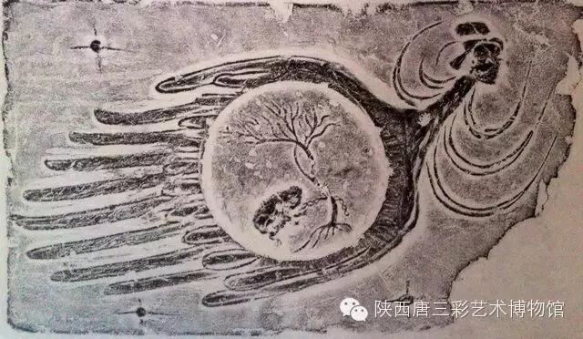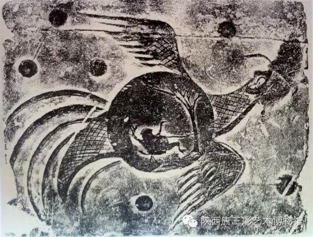 日神和月神画像砖,通常高悬于西王母画像砖两侧,相向而飞。