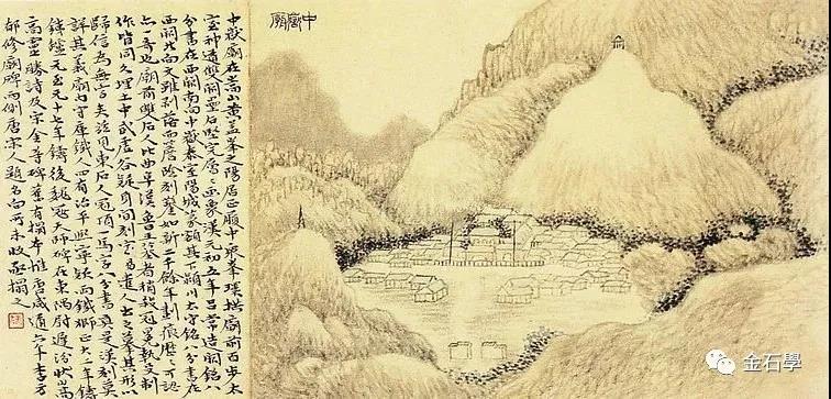 黄易的《嵩洛访碑图》计有:大觉寺、嵩阳书院、中岳庙、少室石阙、白马寺、嵩岳寺小石山房等二十四处。