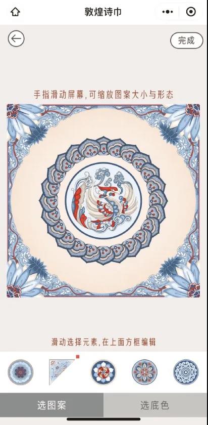 “云游敦煌”小程序中的DIY丝巾版块“敦煌诗巾”,允许用户自主参与甚至个性化定制。(手机截图)
