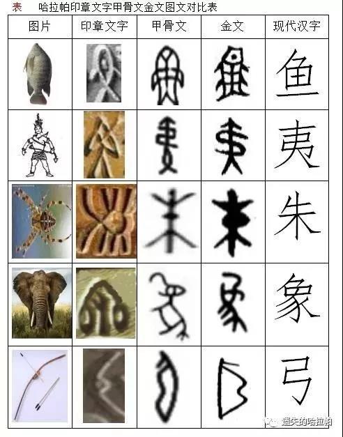 下面是作者列出的五个哈拉帕印章文字破译表,看看彩色的印章文字,就是最早书写《山海经》的华夏文字。