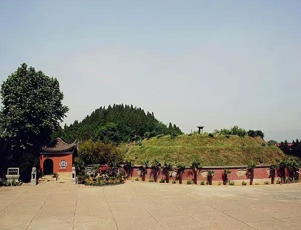 穿过仿汉阙式大门,沿路南行约七十米,但见路的右侧有一个高大的土冢,犹如土山,东西两墓并列,相