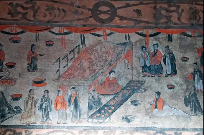 和戏舞场地。尽管说场面宏大,人物众多且舞乐表演繁杂,但表现出宾主有序,层次分明,惟妙惟肖,淋