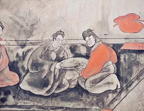 显然是宾客位置。这两排席地而坐者,应该是应约而至的宾客。不同的服饰表明他们来自不同的阶层。这
