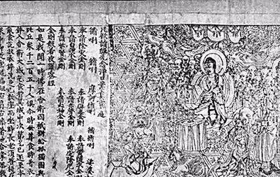 唐代雕版印刷品《金刚经》局部(印刷术的发明大大促进了文化的传播)