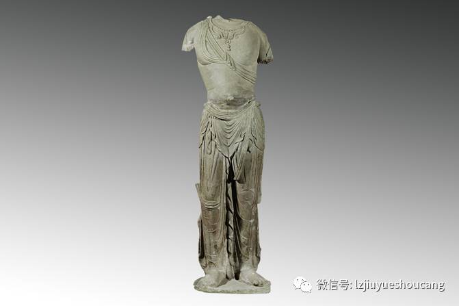 高112厘米。1952年太谷县白城村征集。青石立像,虽头、臂已残,但肌肉、骨骼刻画非常准确。身体造型采用富于变化的“S”形,更显生动优美。丰满的肌肤,微凸的髋臀,流畅的线条,充满青春的活力和生命的质感。