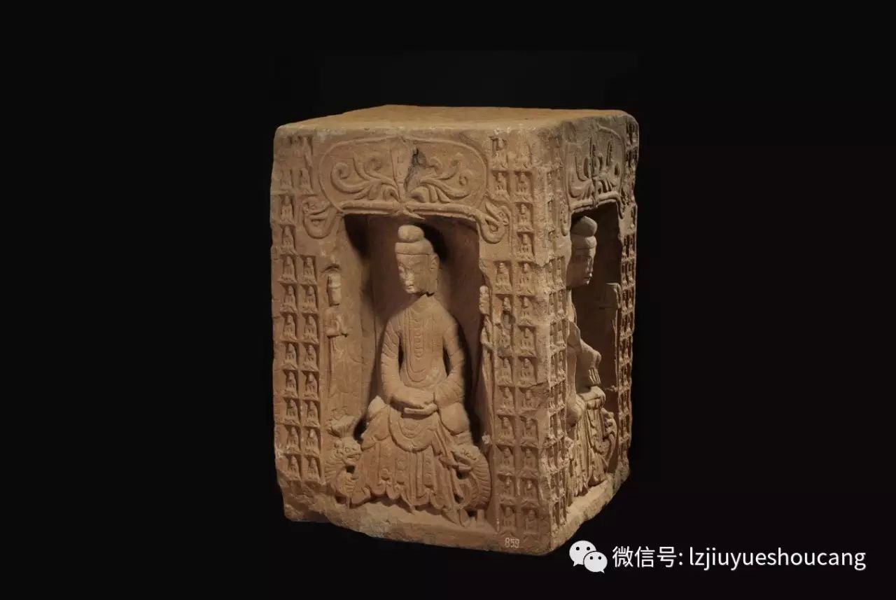 高61.5厘米,宽43.5厘米。1959年山西省沁县南涅水出土。长方体,四面均开有屋形龛,龛楣方桃形开光内刻有莲花纹饰。龛内均雕三尊像。一面主尊为交脚菩萨,其余三面均为佛坐像。每面的主像脸部均修长,身着通体大衣,下摆衣褶繁复,垂覆于座上,座两侧双狮相对而视。主像两侧各有一尊菩萨侍立。龛外雕千佛龛。