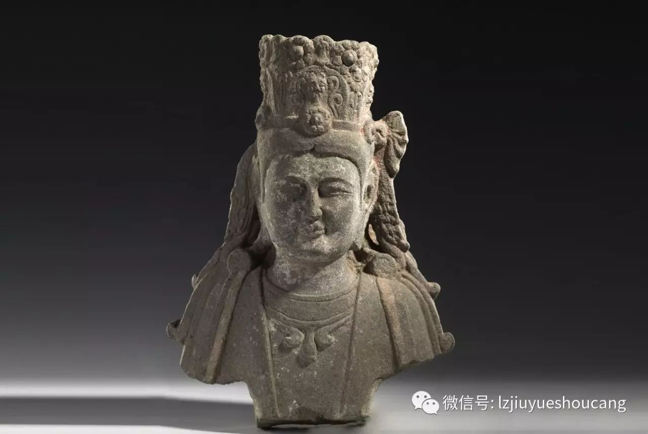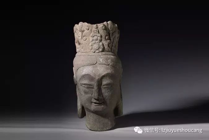 高35厘米。1959年山西省沁县南涅水出土。菩萨头戴高冠,面相圆润,细眉弯长,双目低垂,鼻高耸,嘴轻抿,嘴角上翘,长耳下垂,一副慈悲为怀的神情。