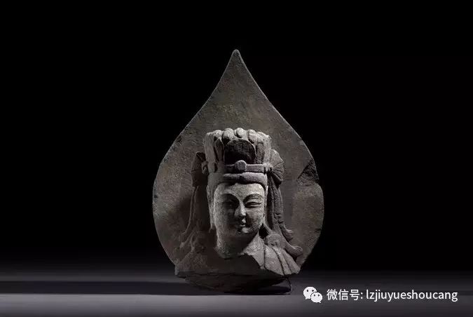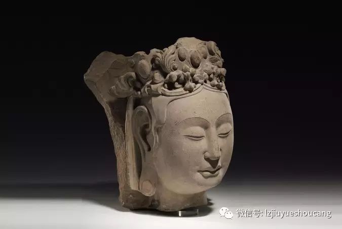 长36厘米,宽25.5厘米,厚15厘米。1979年山西省昔阳县静阳村出土。菩萨头戴高冠,头部后有桃形背光,脸型圆润,弯眉细目。眼帘下垂,鼻梁高耸,嘴唇轻拢,面相端庄慈和。原有彩绘多已剥落。
