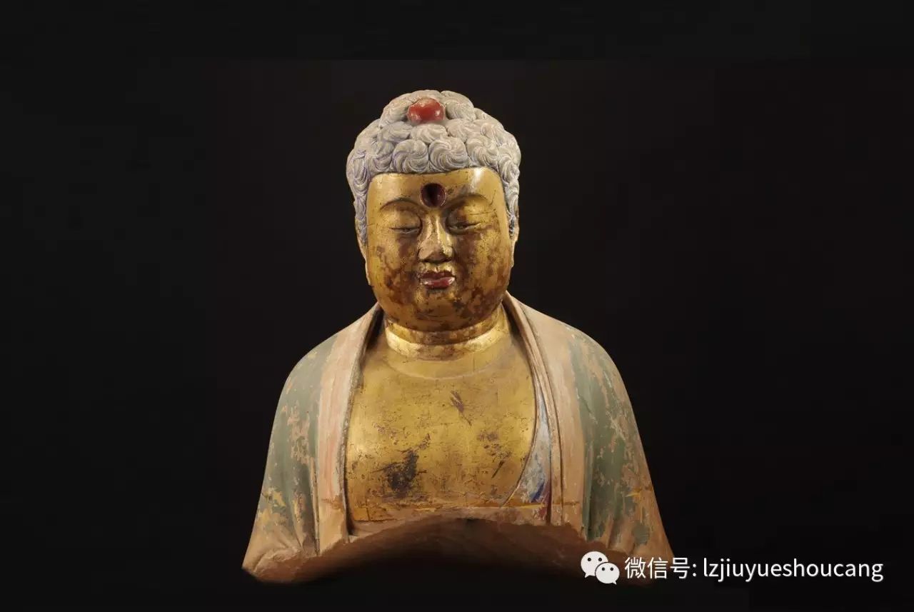 高61厘米,宽51厘米,厚25厘米。2005年山西省五台县佛光寺出土。螺发,矮肉髻,发中嵌有髻珠,面圆润,额前有白毫,微睑双目,阔鼻,厚唇,下颌丰满,身着帔帛,袒胸,下身残缺。涂金彩绘有脱落。