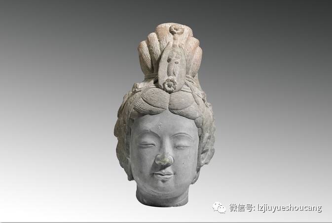 高35厘米,最宽27厘米,厚24厘米。1954年山西省太原市花塔寺出土。菩萨头戴花冠,脸型圆润,长耳下垂,弯眉细目。眼微闭,鼻高耸,嘴轻拢,面相端庄慈和,俨然一个世俗美女子的形象。