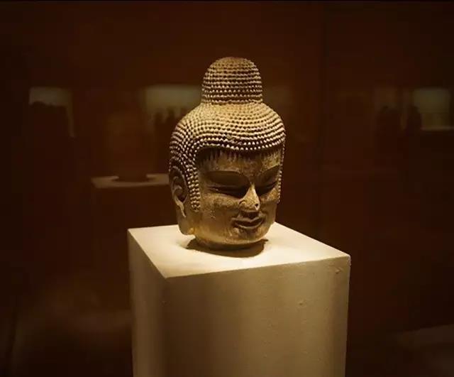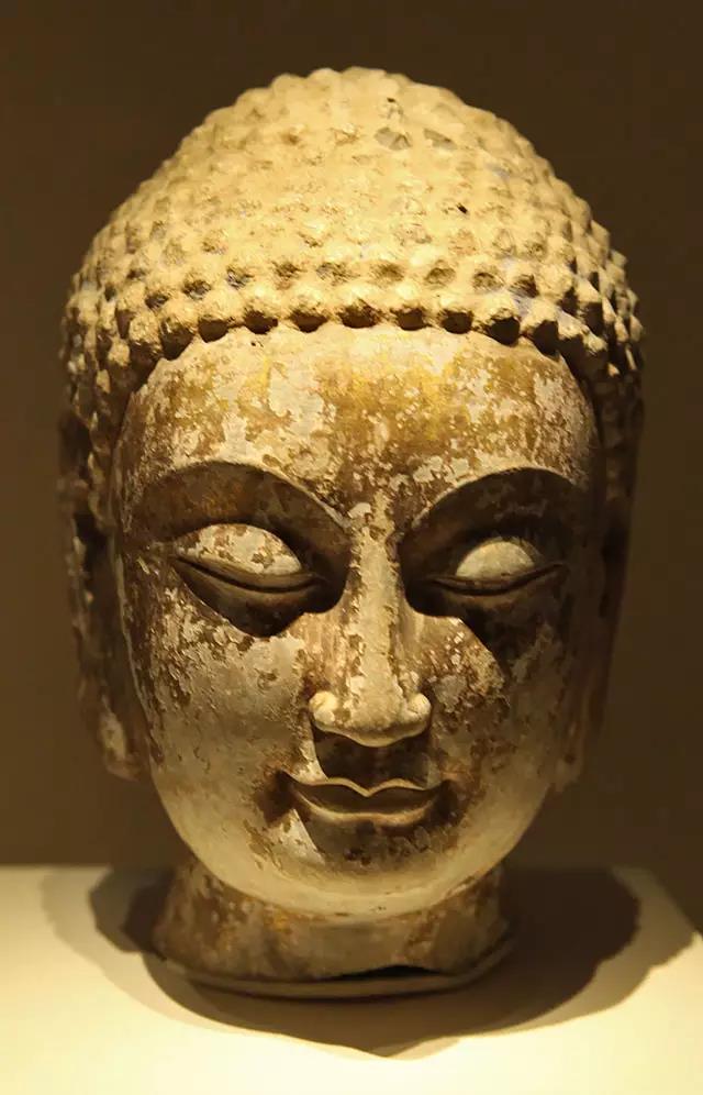 贴金石雕佛头像 北魏 1996年山东青州龙兴寺窖藏出土