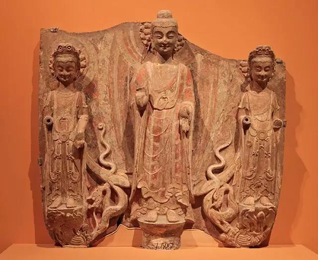 彩绘贴金石雕佛菩萨三尊立像 东魏 1996年山东青州龙兴寺窖藏出土