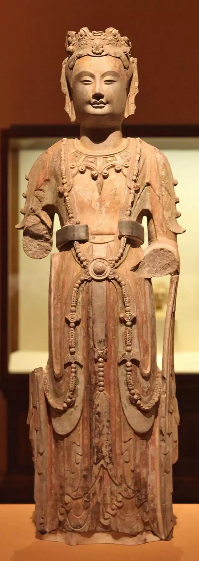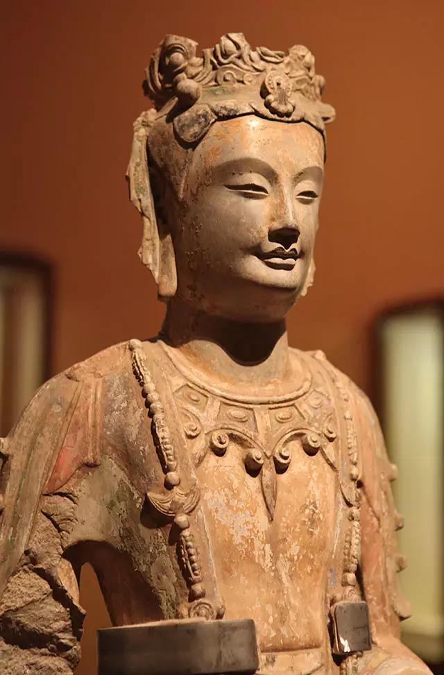 彩绘贴金石雕菩萨立像局部 北齐 1996年山东青州龙兴寺窖藏出土