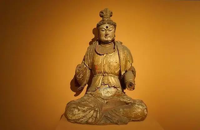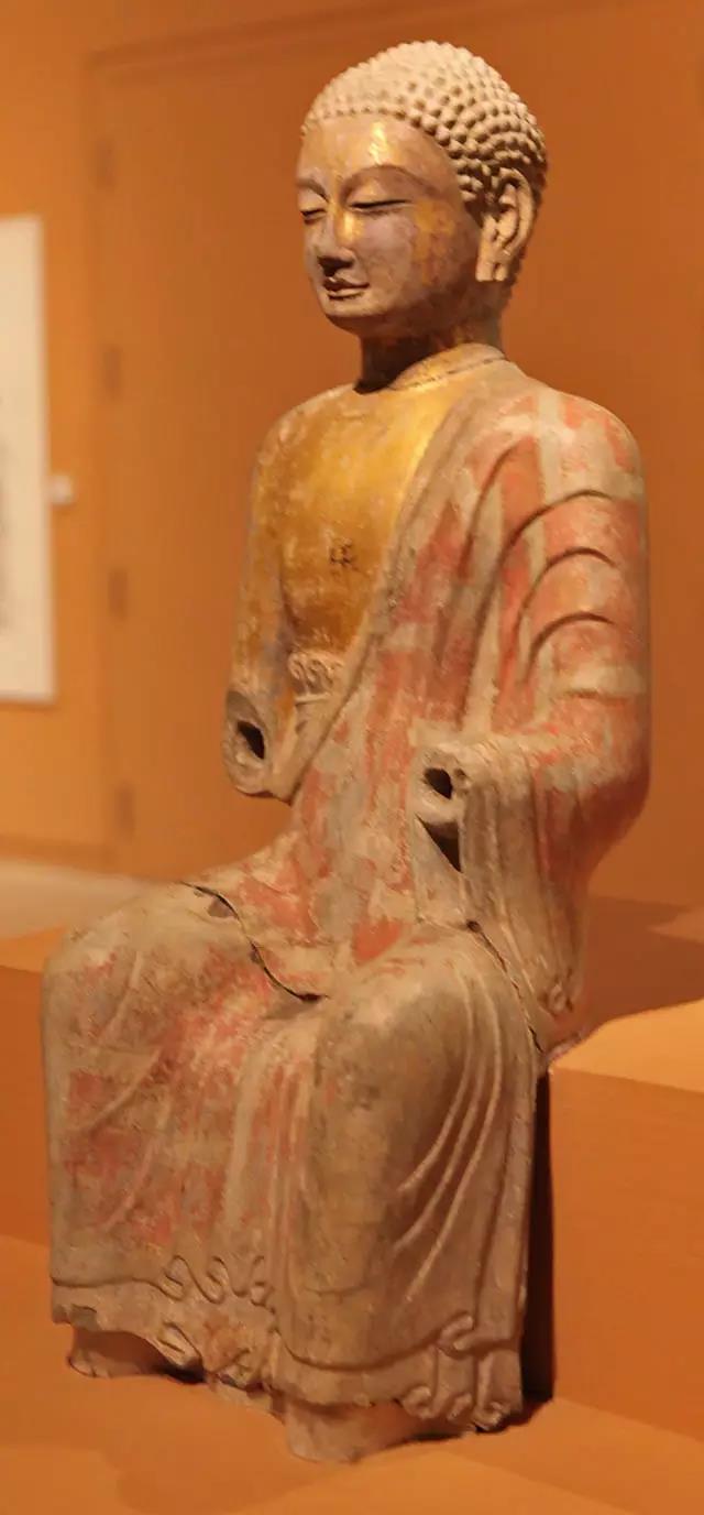 彩绘贴金石雕佛坐像 北齐-隋 1996年山东青州龙兴寺窖藏出土