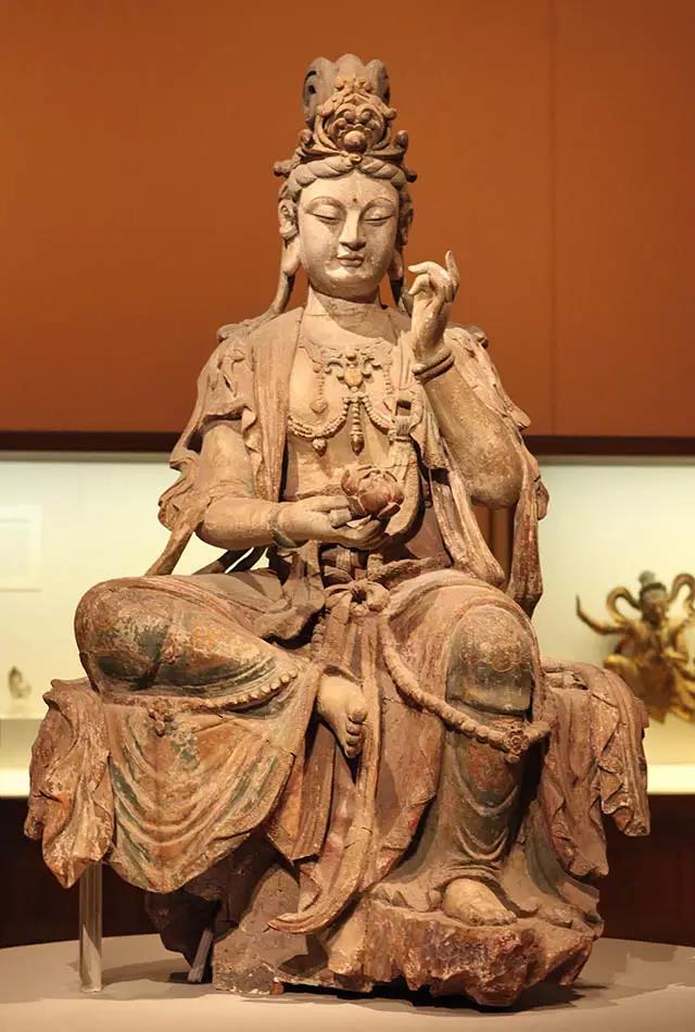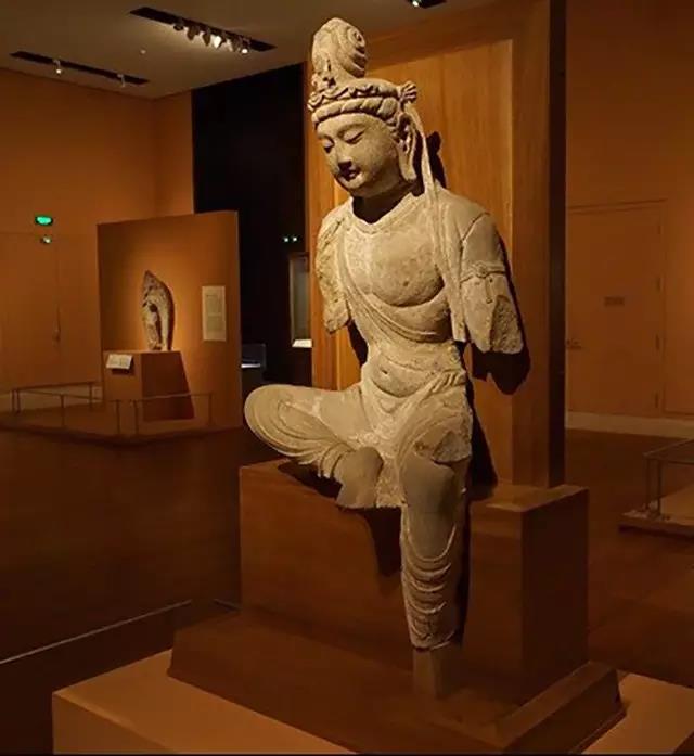 石雕菩萨坐像 山西太原天龙山石窟第21窟 唐 这尊造像的头与身躯分别流落海外,身躯被追回后,头仍在海外,国博这尊的头是后配上去的