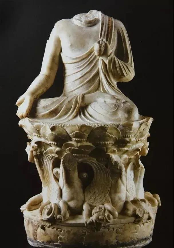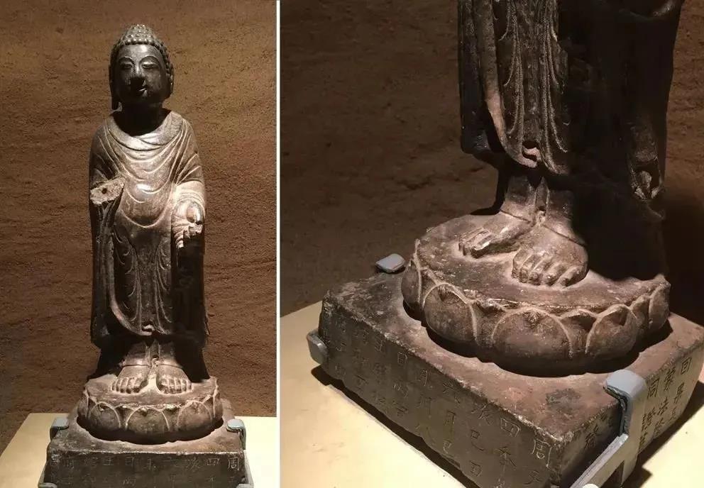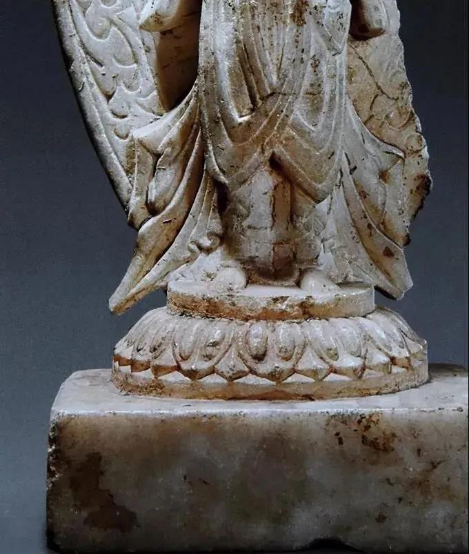 北朝魏时莲花座形制大多简洁,叠加的层数也少,突出单片莲瓣,花瓣清秀长形,突出尖角的视觉感,花瓣的造型也较为单一。佛陀的莲座大多以覆莲为主,仰莲座多为菩萨站立,且大多为平薄的莲花瓣,或以阴线刻,或减地浅浮雕的方式装饰性的紧贴莲台。那种立体感很强的仰莲大量出现则是在北齐北周时代了。