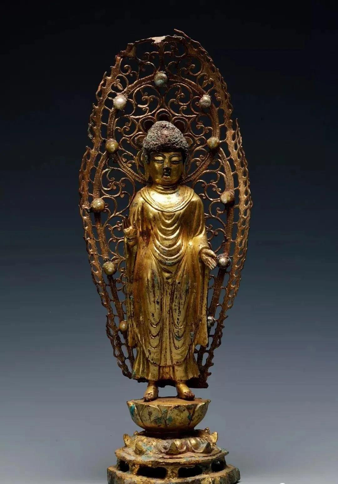 铜鎏金佛立像,统一新罗时期