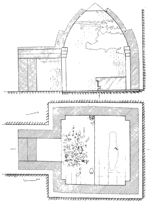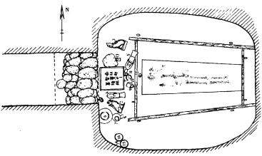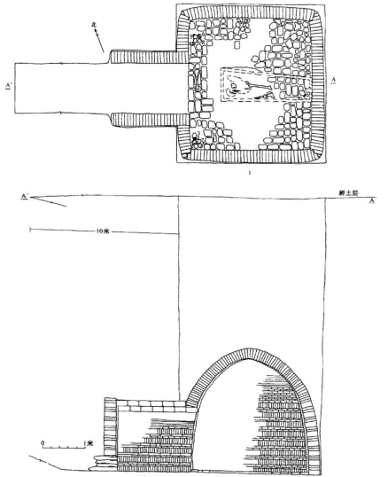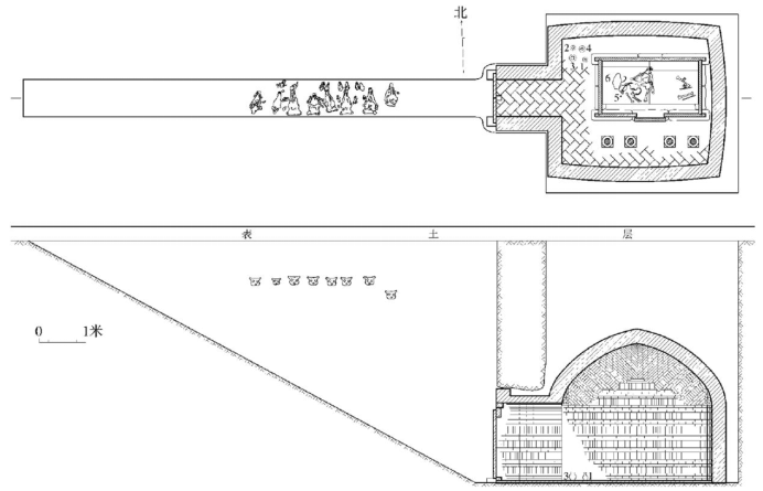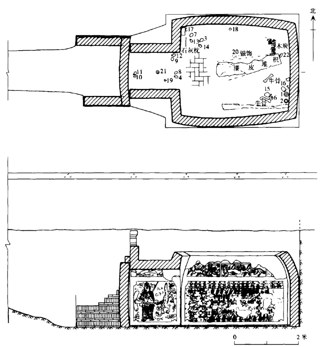 〔图二〕呼和浩特美岱村北魏墓墓室平、剖面图[7]