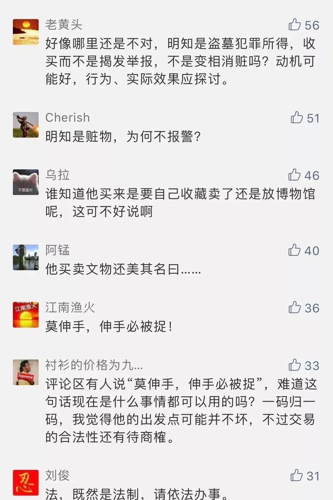 说购买行为助长盗掘古墓?是一个伪命题,听起来有道理,实际没有一点关系,我总结有三点:一,因为盗掘古墓犯罪行为在前,销赃在后,文物出土后犯罪分子必然倒卖而获取经济效益。国内没人买国外未必就没人要?有多少外国人眼巴巴的等着收购中国文物,八九十年代多少文物被走私出境就是例子。