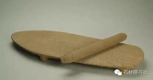 中国新石器时代较早的石雕作品,可以裴李岗文化的石磨盘、磨棒为代表。它是用砂岩加工而成,外观被设计成鞋底状的几何形,工整而大方,重心稳定,其加工难度很大,需要敲打、切割、琢磨修整,涉及到各种石雕加工的基本技法。与同时的各种磨制石器相比,它更具有形式感。它不仅是对原始人生产劳动的忠实记录,还体现了较高的审美价值。这种凝聚着双重性质劳动的石工具,往往被作为随葬品置于死者的身旁,正是宗教般的感召力才能促使艺术家创造出这种罕见的石雕作品。