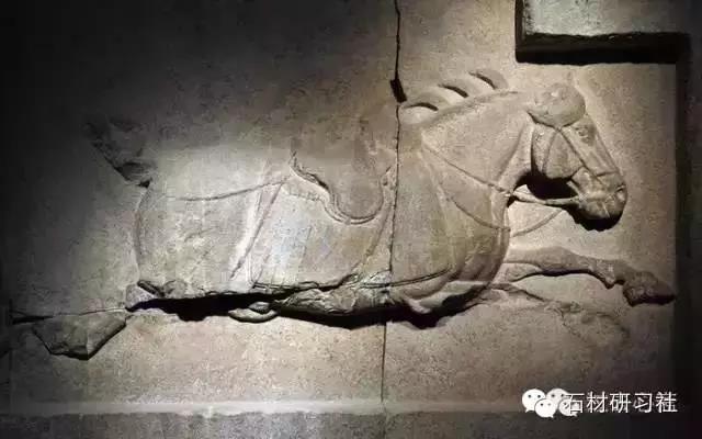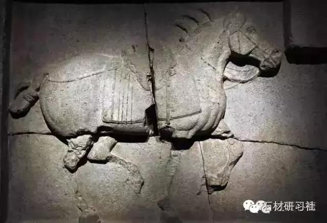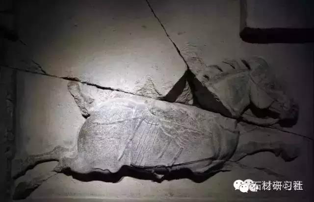 唐太宗昭陵依山为冢,陵前石雕群也未列为定制,但是昭陵前所设置的浮雕石刻——“昭陵六骏”,却是旷古罕见的现实主义杰作。这组浮雕是唐太宗在贞观十年埋葬长孙皇后之后,为了追记自己在戎马生涯中的功绩,为纪念他心爱的战马而雕刻的,这六匹战马分别是“飒露紫,特勒骠、拳笔脶、白蹄乌、青骓、什伐赤”。据说骏马的图样是唐代著名画家阎立本所绘,李世民亲为六骏马写下赞语,每骏四句,由书法大家欧阳询用八分体书写,可惜这些珍贵的遗迹皆因风雨剥蚀,宋以后就模糊不清了。