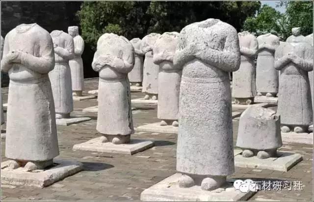 自唐高宗和武则天合葬的乾陵始,陵前石刻形成定制,其雕刻的内容可分六类:依次为石狮、石人和石马及马夫、双翼兽和北门六马、蕃王像、华表、碑石和无字碑及述圣记碑。不过这种陵前石刻制度后来实行并不十分严格,尤其是随政体的衰落和经济文化的萎靡,后继帝陵已难现乾陵石刻的雄姿。