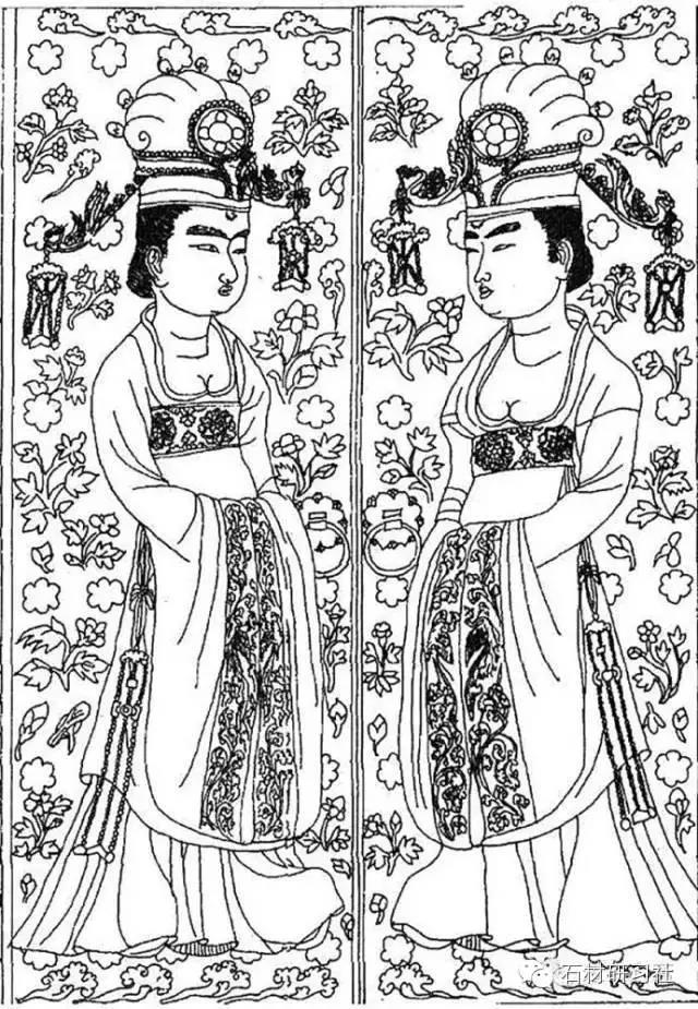 ▲唐代懿德太子墓石椁线刻仕女线描图